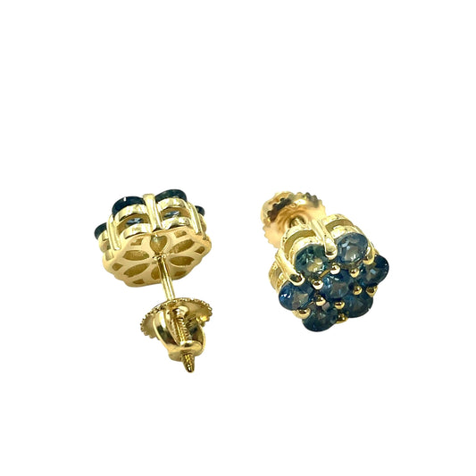 14K Natural Stone Flower Studs (Blue)