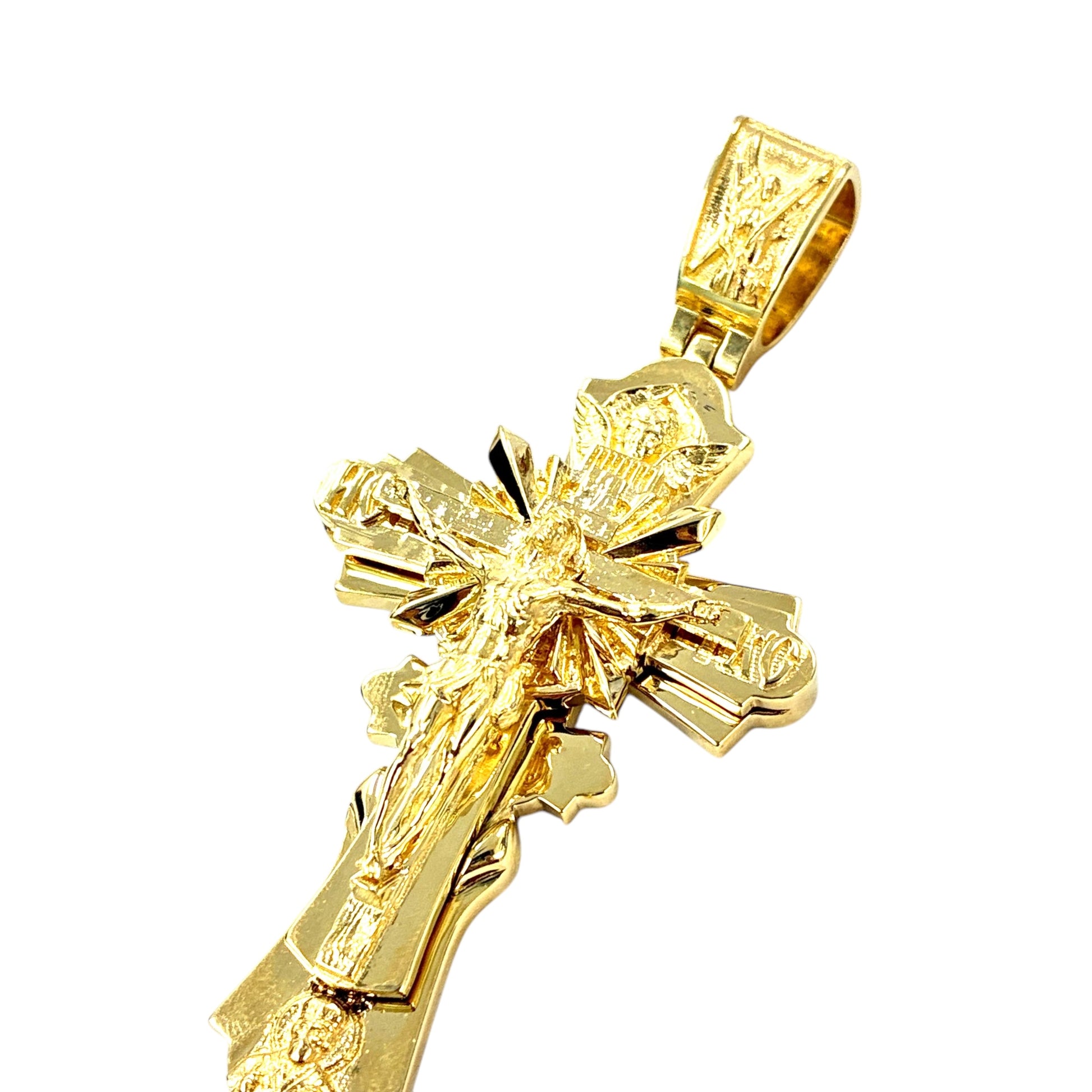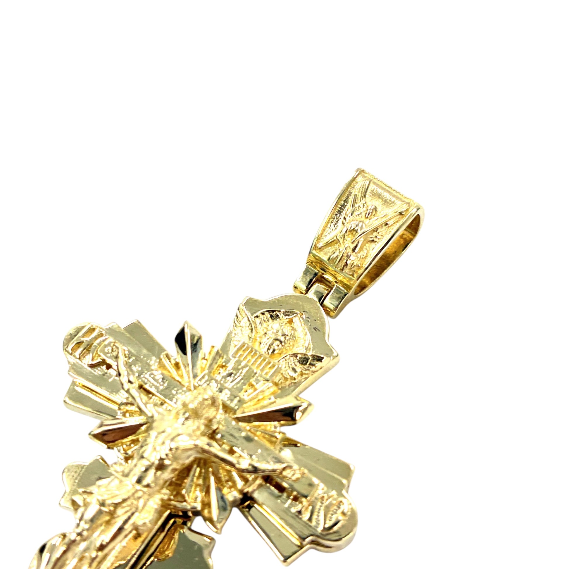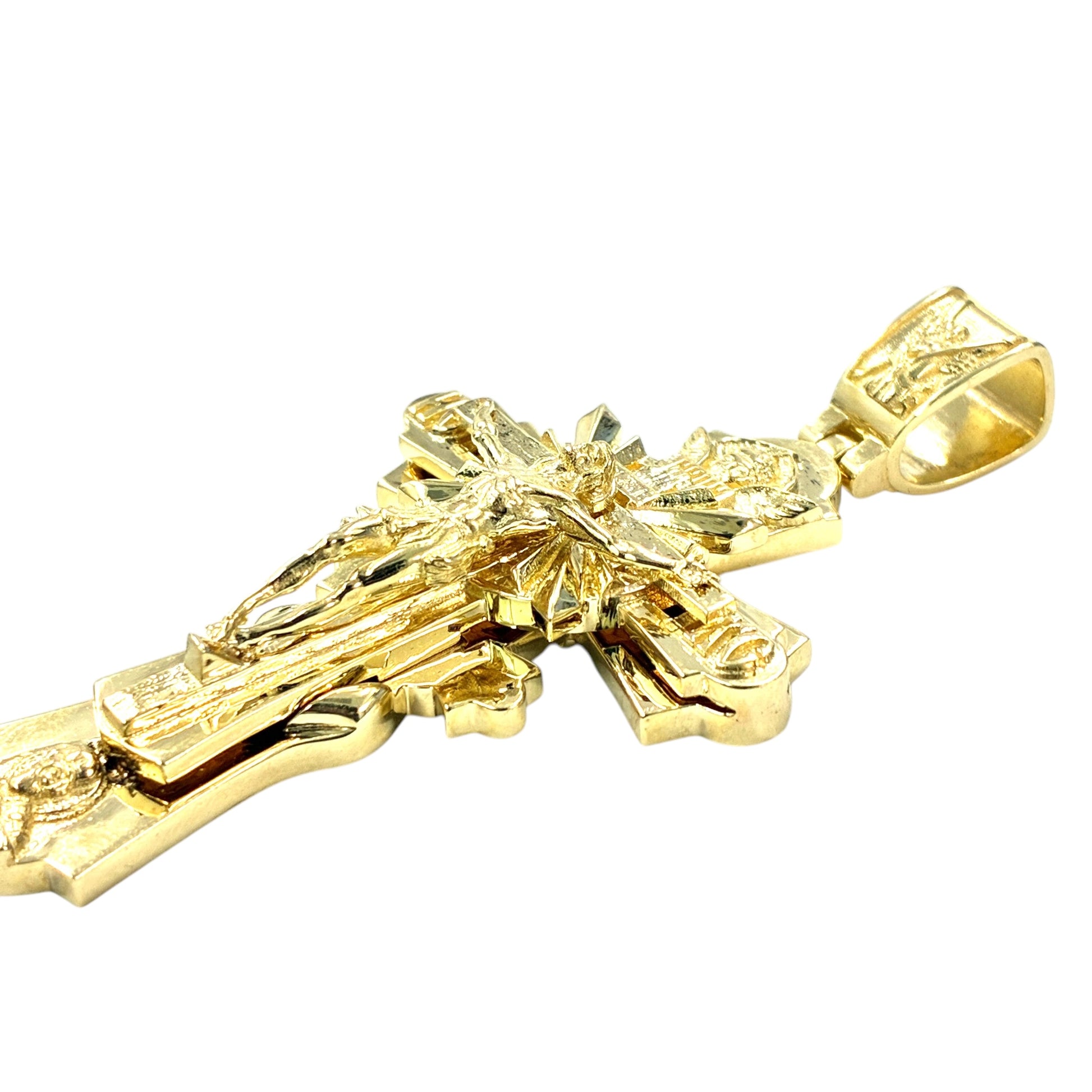 An engraved jesus crucifix pendant in 14k solid yellow gold.