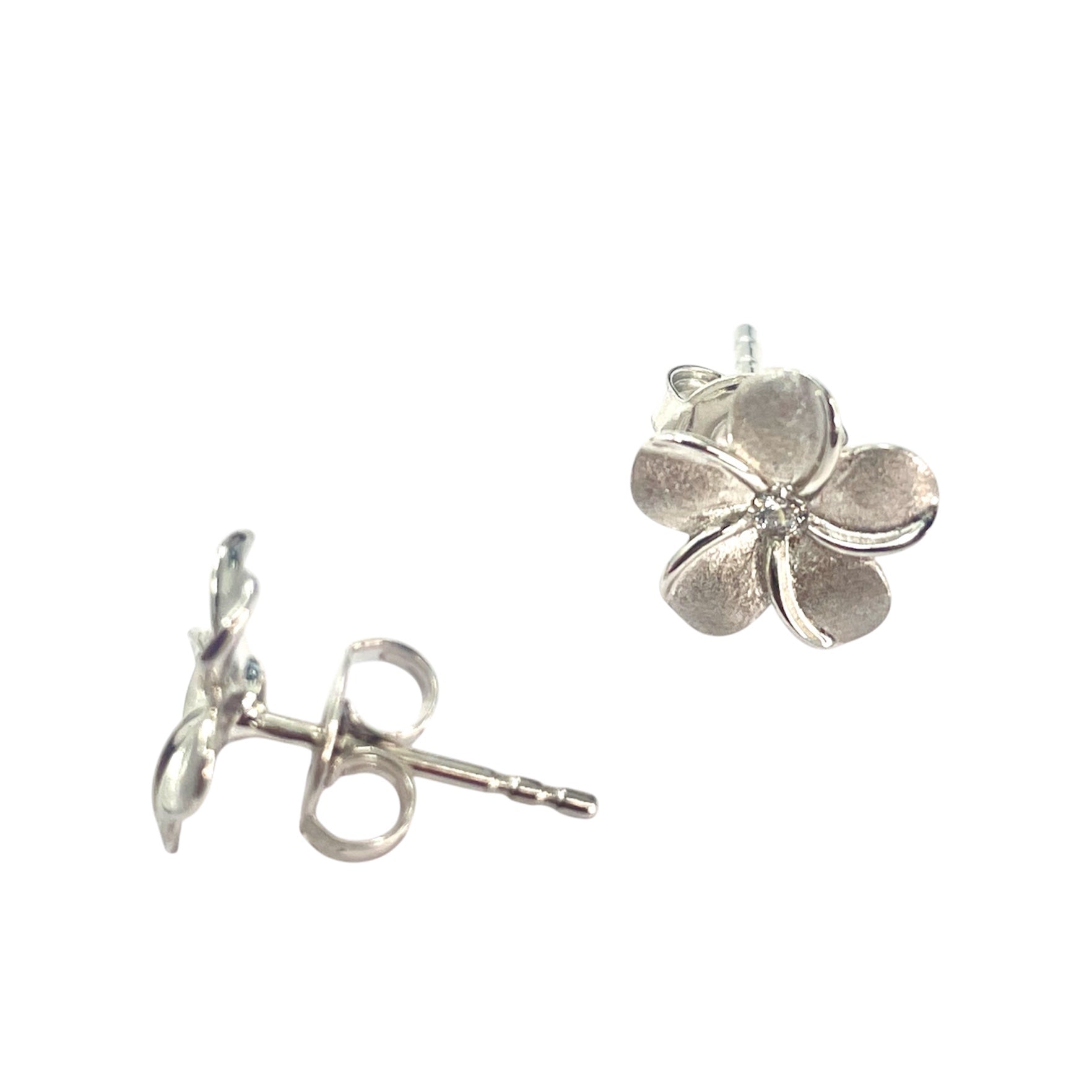 14k white gold flower stud earrings with backing. 10mm.