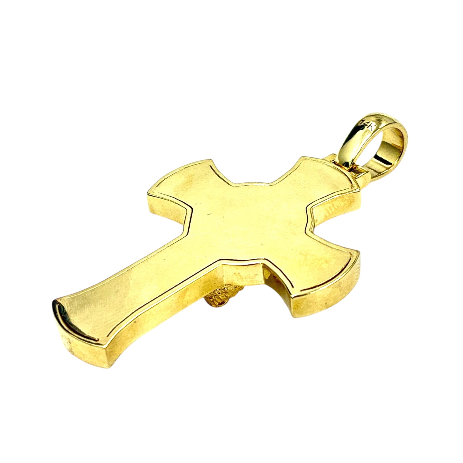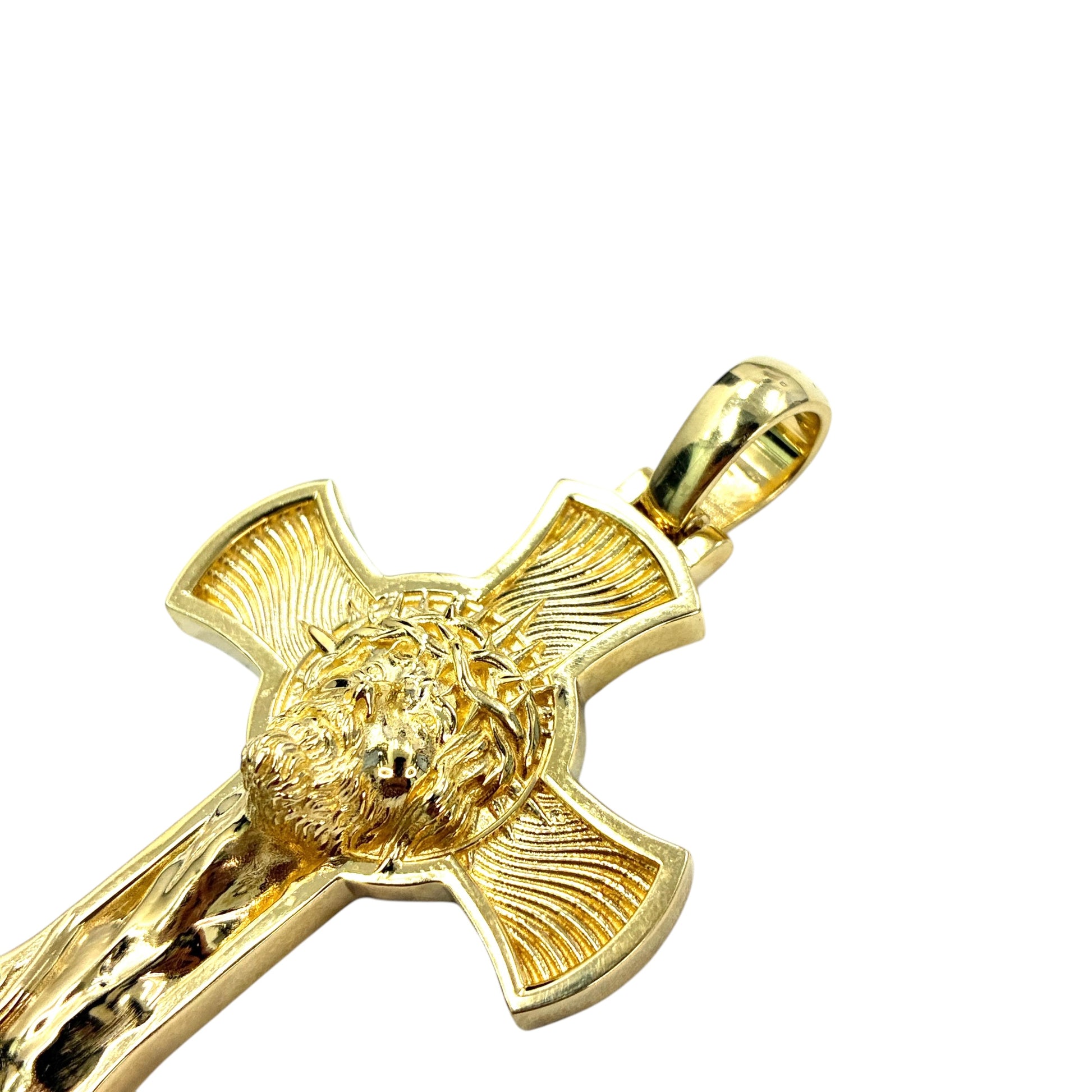 A 2D jesus face crucifix pendant in 14k solid yellow gold.