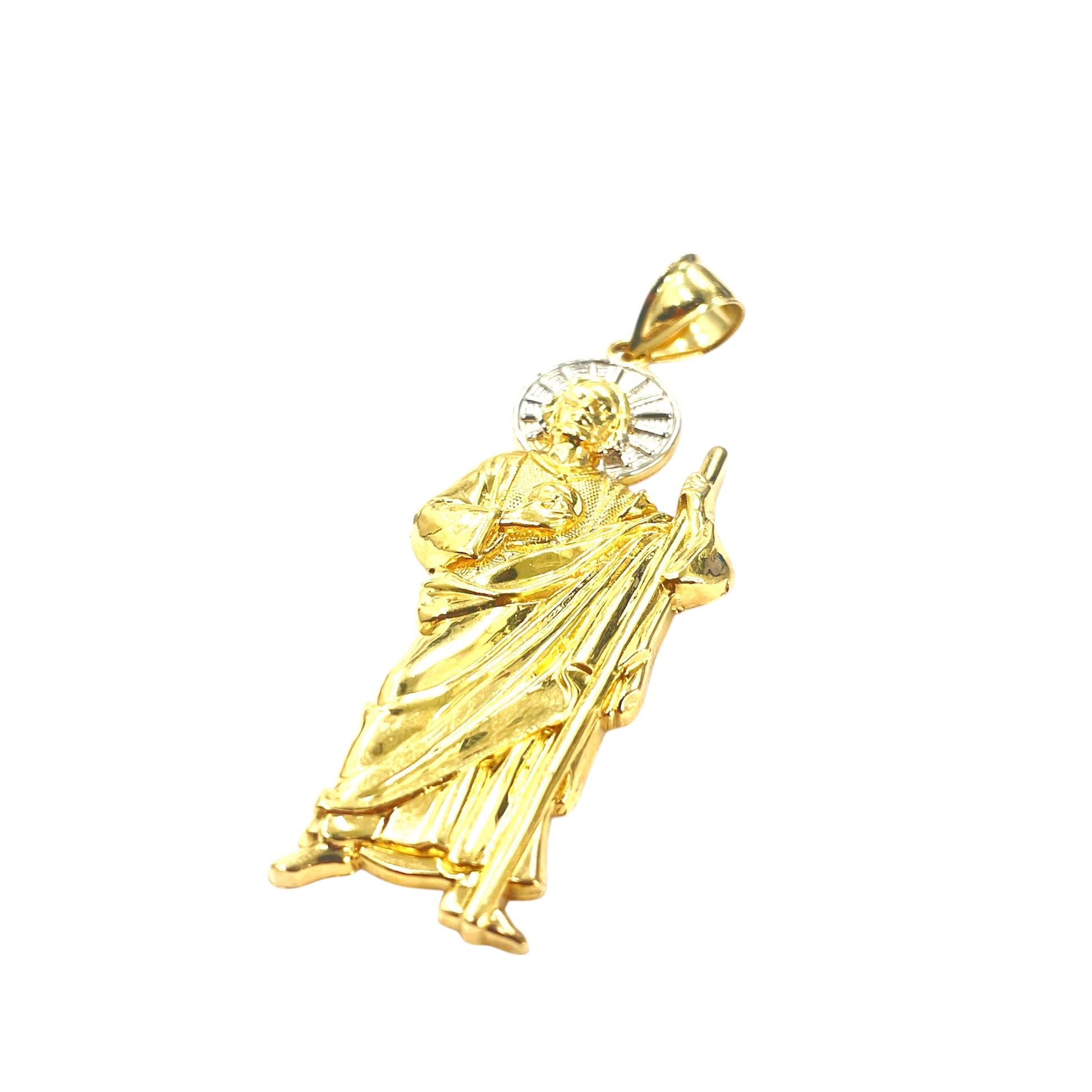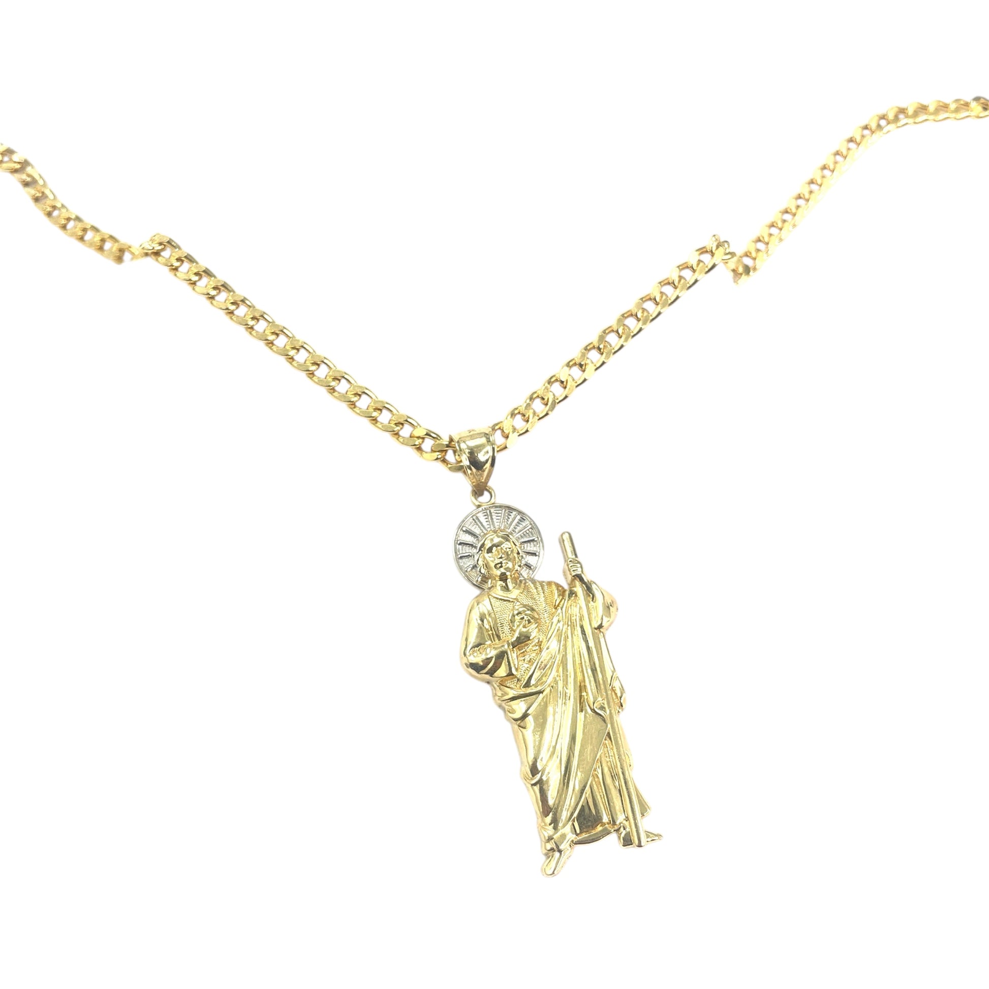 14k solid yellow with white gold St. Jude (San Judas Pendant) in size large.