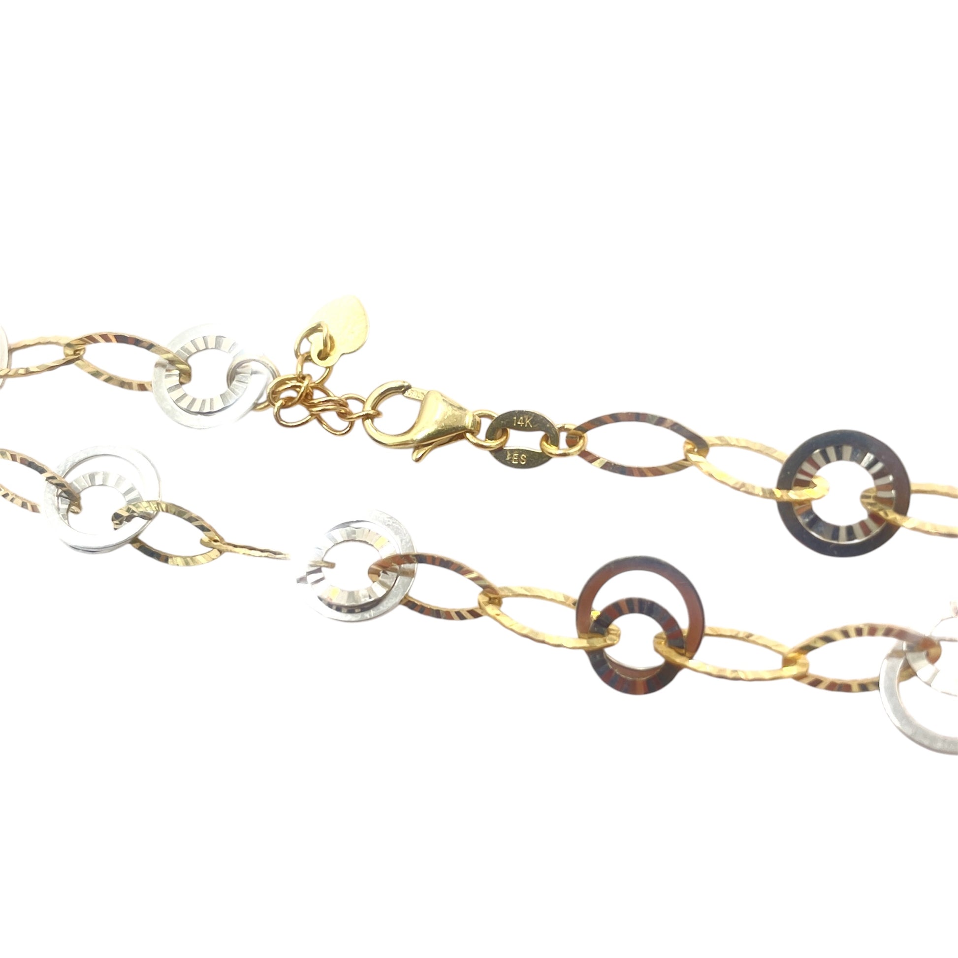 14k Two Tone Round Link Chain Bracelet